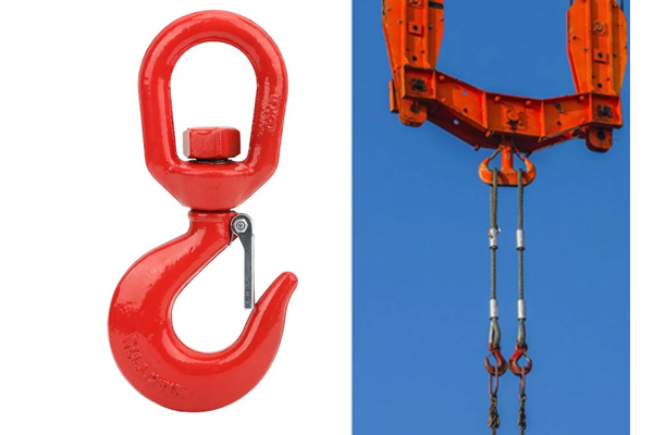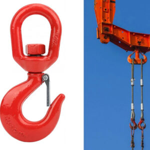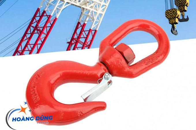 - An toàn: Móc cẩu xoay có cơ cấu khóa móc chắc chắn, giúp vật nặng được giữ chặt, tránh trượt khỏi móc.